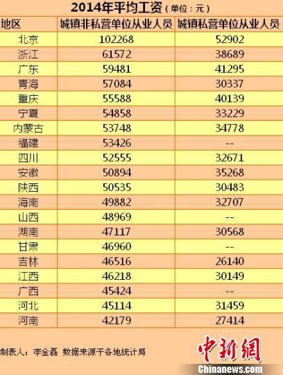 20省份去年平均工资出炉 安徽低于全国平均水平