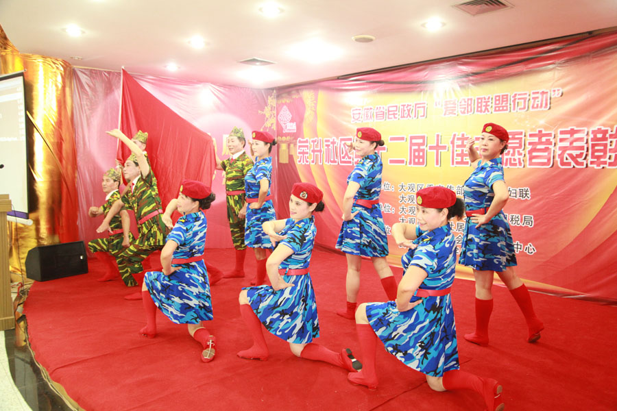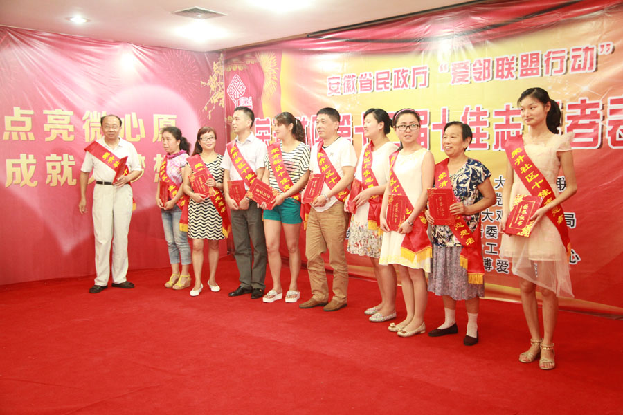 2015年7月31日下午,由大观区委宣传部、大观区妇联、大观区龙山路街道党工委主办,大观区文明办、大观区国税局、大观区荣升社居委承办,安庆市宜城社会工作服务中心、安庆市博爱医院协办的安庆市大观区龙山路街道荣升社区第十二届十佳志愿者表彰大会在大观区国税局二楼多媒体大厅隆重举办。相关单位领导、志愿者代表及荣升社区居民参加了会议。