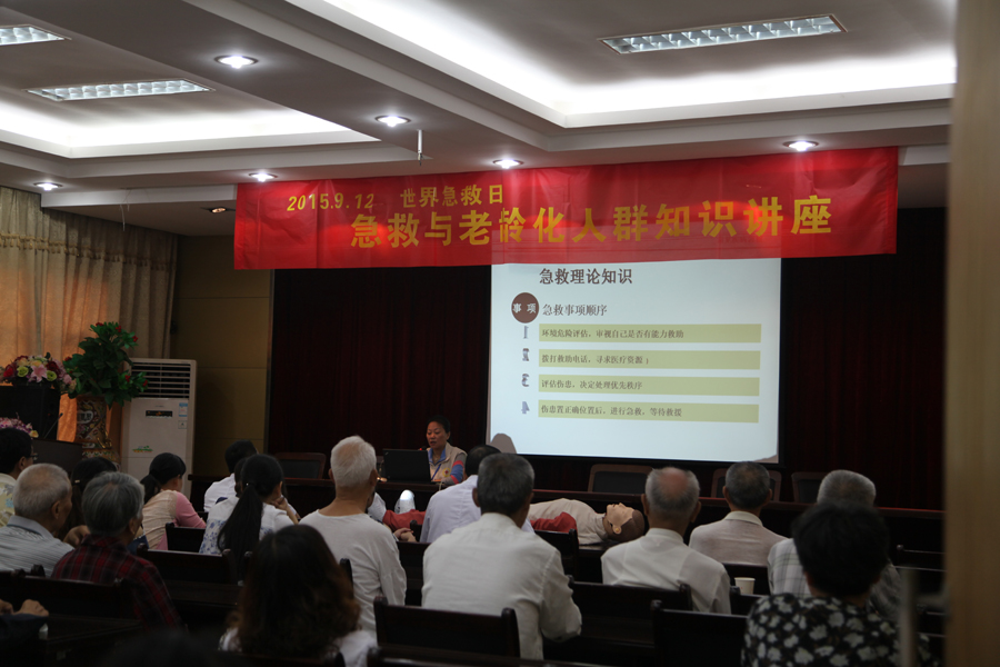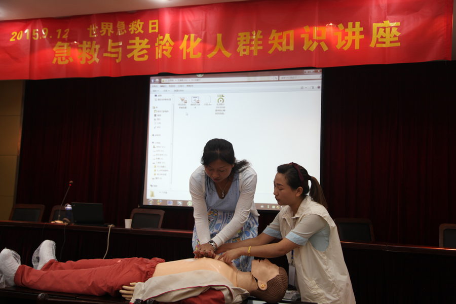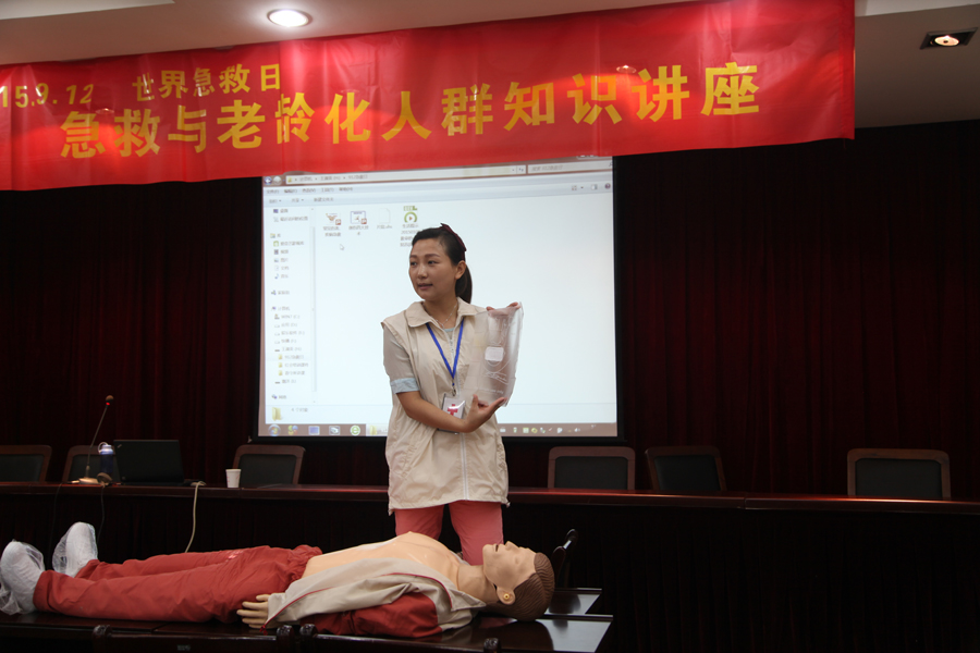 2015年9月12日是第16个“世界急救日”,安庆市会联合博爱医院围绕主题“急救与老龄化人群”知识讲座在地质社区召开,积极传播急救知识与理念。此次活动由安庆会主办、安庆市博爱医院承办、地质社区协办。