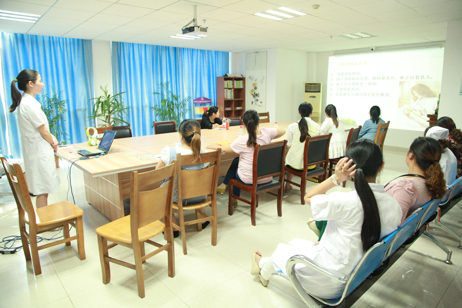 下午三点,我们的孕教课堂准时开始了,准妈妈们在家人的陪伴下早早就来到了博爱医院的母婴教室。在主持人宣布活动开始后,大家先是围坐着一起观看博爱医院的产科宣传片。各位准爸爸妈妈看的非常认真,对博爱医院的环境设施以及服务有了更深的了解。随后,博爱医院的吴老师就正式开始讲解“母乳喂养新知识”,从多部门、多层面、多渠道讲解了母乳喂养的相关知识,在吴老师讲解的过程中,孕妈妈有的用笔记下要点,有的用手机拍下课件。而在座的准爸爸们表现尤为可嘉,除了照顾妻子,记笔记,还踊跃提问、回答问题,现场气氛活跃,爱意浓浓。