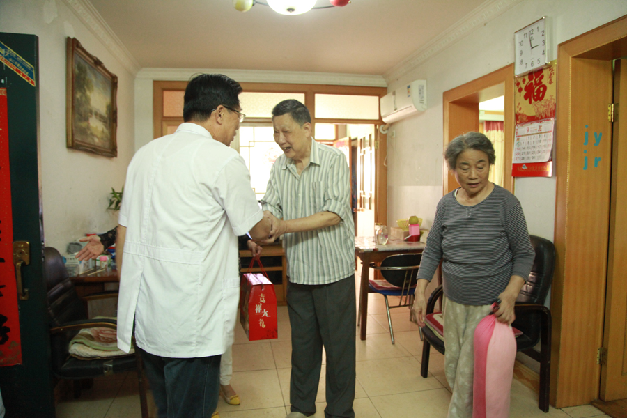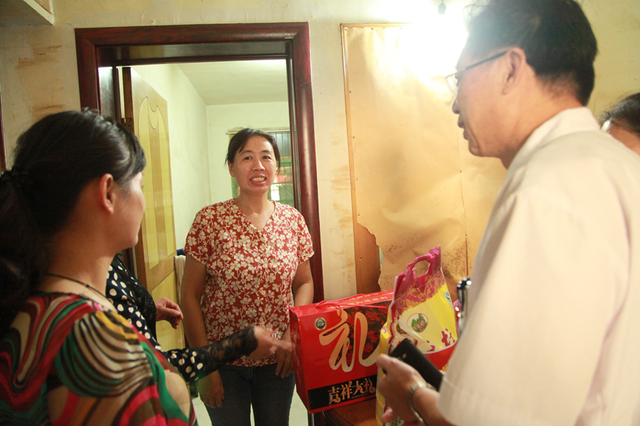 随后,潮院长一行来到了人民新村居民方奶奶的家中慰问。方奶奶今年70岁,失独家庭,平日靠政府给予的补贴生活。在详细了解相关情况后,潮院长嘱咐老人要坚定信心,保持好身体健康,博爱医院也始终陪伴在他们的左右。潮院长亲自为他们送上了中秋慰问品。