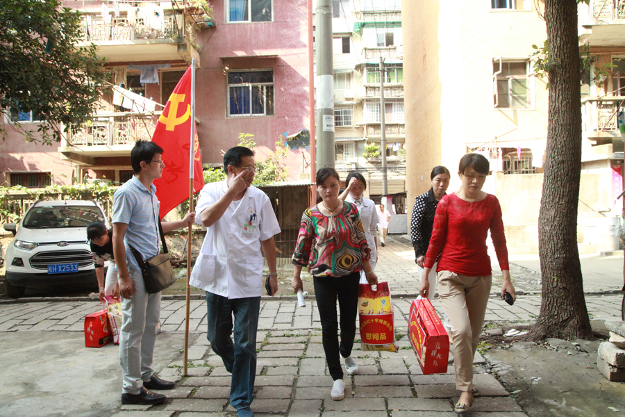 在安庆第11中学宿舍蒋志远的家中,潮院长关切地向他询问身体情况和生活状况,当了解到蒋志远家庭离异,独生子智力残疾,现在正在特殊学校里时,每月只靠政府补贴金过生活时,潮院长鼓励他要树立信心、乐观生活,如果身体有不舒服的情况,可以及时与安庆市博爱医院联系。安庆市博爱医院始终坚持“以人为本”的服务理念,家庭贫困者可申请免费治疗。在今年的4月份,博爱医院曾成功治愈了来自岳西县的宫颈患者袁玉环老人,因老人家庭极为贫困,博爱医院免去了其全部医疗费用。