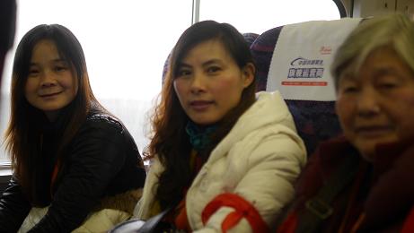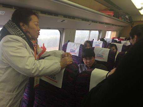 车上学员们一个个都十分的兴奋、开心,一上车便东张西望,看看着、摸摸那,有的还热情的跟前后座打招呼,有的只是紧紧的抓住身边志愿者的手,张开嘴巴对他们“微笑”,有的只顾卖萌,有的和身边的爱心人士却有着说不完的悄悄话。高铁从之前只有从电视上感受到的交通工具,今天他们切身体会到了。流线型的火车,白色的车身,风驰电掣又稳若泰山的前行。对于他们很多学员而言,去南京这也是第一次,一趟列车将两个城市联系在了一起,一趟列车把南京和我们的学员联系在了一起。