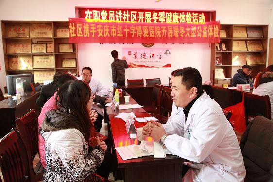 近日,安庆市博爱医院“送健康进社区公益义诊活动”正在如火如荼的进行中。为切实做到关爱老百姓健康,博爱医院特组织医护人员走进大观区花亭南村社区,为居民进行详细的疾病排除,并提供公益体检,将健康真正送到百姓的家门口。