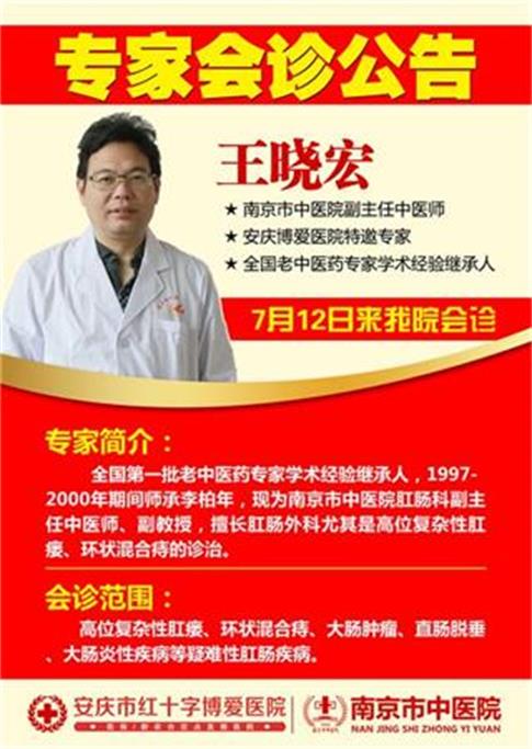 特别提示:需预约7月12日南京市中医院肛肠专家王晓宏“专家号”的患者,可拨打会诊服务热线0556-5533222,足不出皖,在家门口享受南京大专家“一对一“亲诊服务。