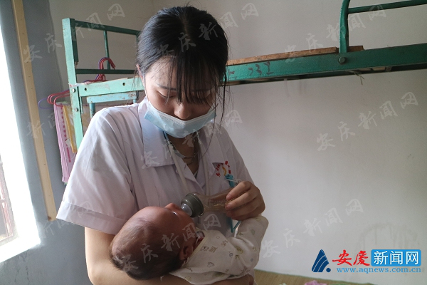 严佳正在给婴儿喂药。