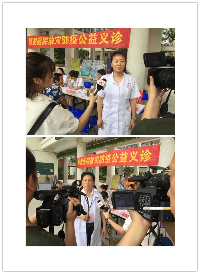 本次义诊,安庆市博爱医院医疗队共为受灾安置点的500余名群众进行了健康检查。现场反响热烈,媒体竞相报道。在安庆电视台《健康指南》栏目、公共频道《热线800》栏目采访中,院感办、义诊部主任王淑英也表示:此次义诊我们主要是针对灾后出现的痢疾、伤寒副伤寒、霍乱、食物中毒、甲型肝炎、疟疾、乙型脑炎、感冒等传染性疾病、灾后消毒的预防和宣传,让广大受灾群众得到更好的医疗保障。”