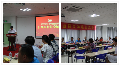 8月26日下午三点半,安庆博爱医院首场行风监督员沟通交流会在医院三楼学术报告厅如期召开。来自各社区委12名代表以及安庆博爱医院副院长王学明等领导出席并参加了会议。会上,社区委代表认真细致地了解了医院的整体情况,特别对医院医德医风、医疗质量和服务进行了深入考察。12名社区委代表接受医院聘任为安庆博爱医院首批行风监督员,他们将成为监督医院一举一动的那雪亮的十二双“眼睛”,为医德医风把关,为医疗质量和服务尽责。