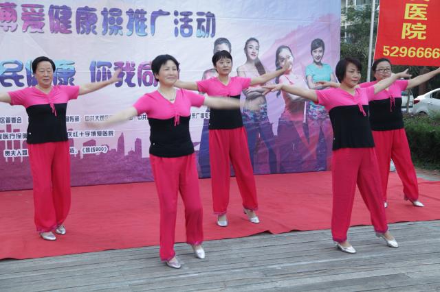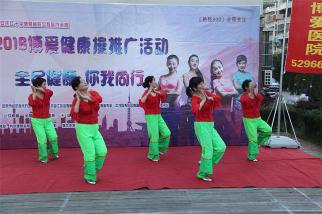 11月3日下午,安庆市技术开发区管委会、安庆市广播电视台主办,安庆博爱医院承办的“全民健康,你我同行”2016博爱健康操推广活动在曙光社区千和花园顺利举行。在活动现场,30名来自曙光社区居民五人一组,和着优美的音乐,踏着整齐的节拍,为现场观众展示了博爱健康操和广场舞,为健康加“骨”劲。