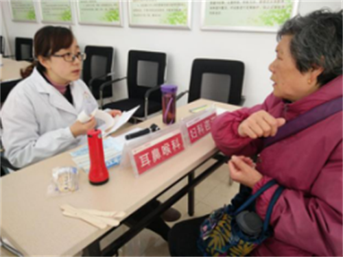 ▲图为居民向耳鼻喉科鲁医生讲述耳鸣症状