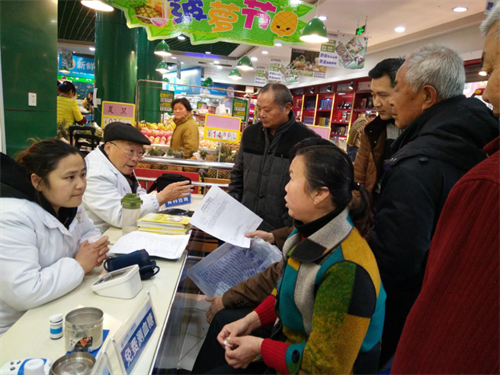 3月24日上午,安庆博爱医院志愿者服务队一早来到菱北社区金华联超市开展“普查、援助、救治”公益惠民活动。博爱医院秉承“人道、博爱、奉献”的会精神,为超市附近居民提供测血糖、量血压、骨科健康咨询等服务,同时为需要的居民来院免费拍摄X光片,贫困患者和低保户家庭住院可减免500—1000元医疗费用。
