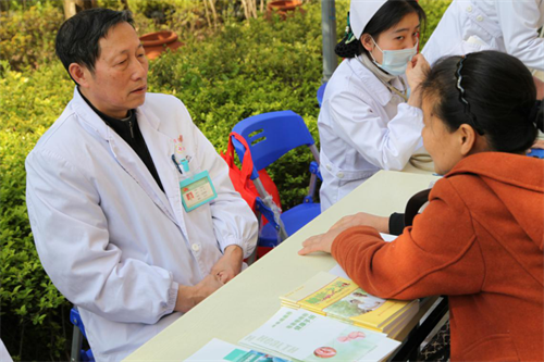 ▲图为博爱医院党员志愿者外科主任刘永庆帮居民答疑解惑