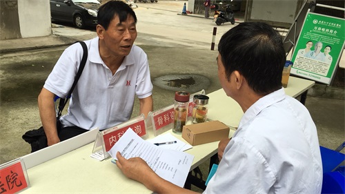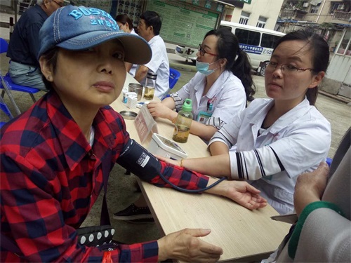 ▲图为博爱医院医疗服务队走进华茂社区开展公益义诊