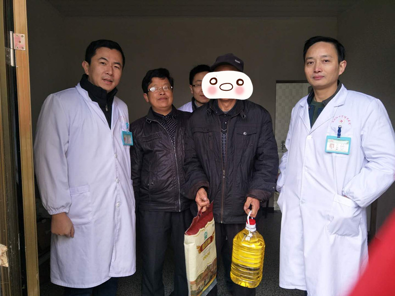 义诊结束后,博爱医院专家团队还进行了贫困家庭帮扶系列活动,走访万全村多家聋哑、五保、失独等贫困家庭,为他们送去了大米、食用油等慰问品。村民王建军(化名)的家庭情况令义诊队动容,近七旬的年纪不仅聋哑还患有残疾,医院耳鼻喉科主任林涛和骨科主任虞泽河针对他的身体情况给出合理治疗建议。
