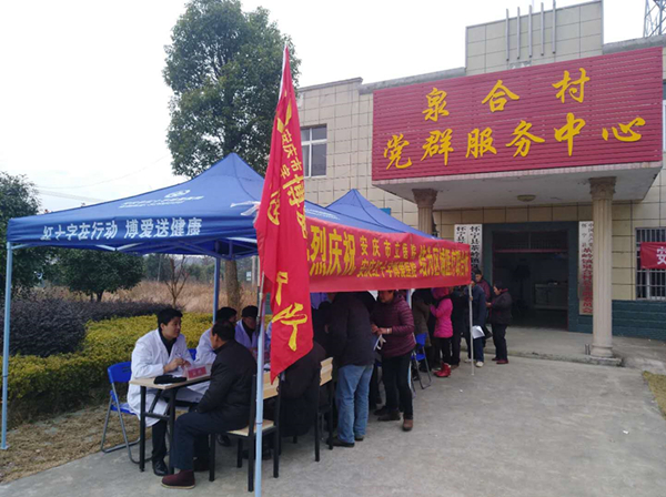 12月23日,又是一个周六,当大家计划在冬日约上三五好友去逛街聚餐的时候,安庆博爱医院与安庆广播电视台公共频道《热线800》联合开展的公益活动“博爱”健康体检公益行已经来到怀宁县茶岭镇泉合村,为那里的村民进行义诊活动。