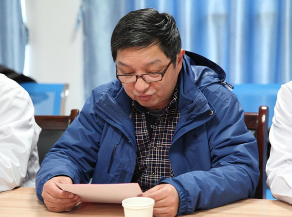 图为市立医院事业发展科江科长在签署合作协议现场讲话