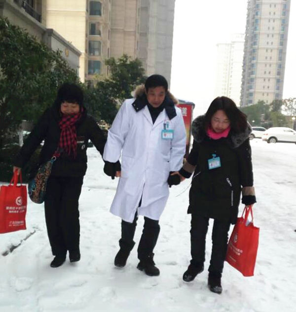 安庆博爱医院义诊队无惧风雪,坚持到碧桂园一号公园小区上门对居民进行健康指导,根据雨雪冰冻天气的伤病特点给出防范建议,还免费给居民测血糖、血压,普及家庭医生服务知识,在严冬中给小区居民带来一份感动。有居民为表示感谢,亲自将工作人员送到电梯口,让博爱医院义诊队感受到阵阵暖意。