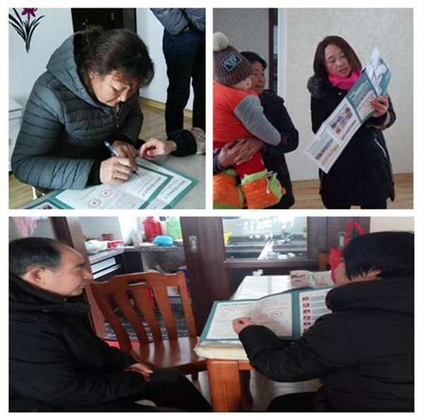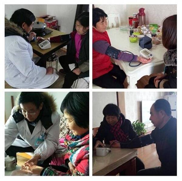图为博爱医院义诊队冒着风雪到一号公园小区对居民进行健康指导