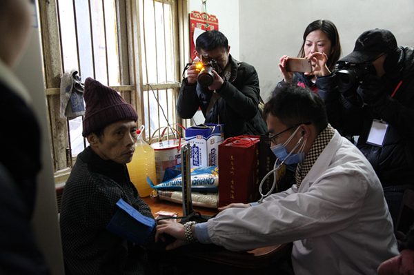 在宝善庵小区,博爱医院慰问小组还慰问了困难家庭杨永强。50岁的杨永强弱智,患肺结核病多次住院,儿子也是智力残疾人,全家生活靠低保维持。医院向他家送上了大米、食用油等慰问品,并由专家为其进行了健康检查。据博爱医院慰问小组介绍,虽然此次慰问对于困难家庭来说是杯水车薪,但希望通过慰问小组亲切的问候和贴心的话语能够让他们感受到了来自社会的关怀,也为这个寒冬增添了丝丝暖意。