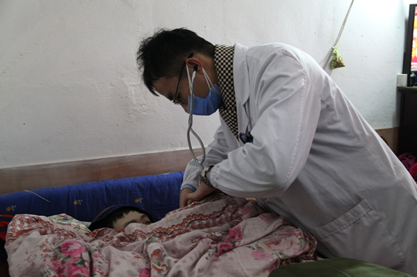 图为专家组成员许明明给杨台云儿子进行检查