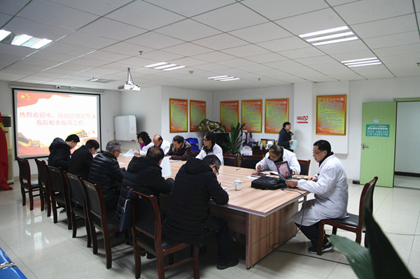 图为市区组织部领导到博爱医院检查指导党建工作现场
