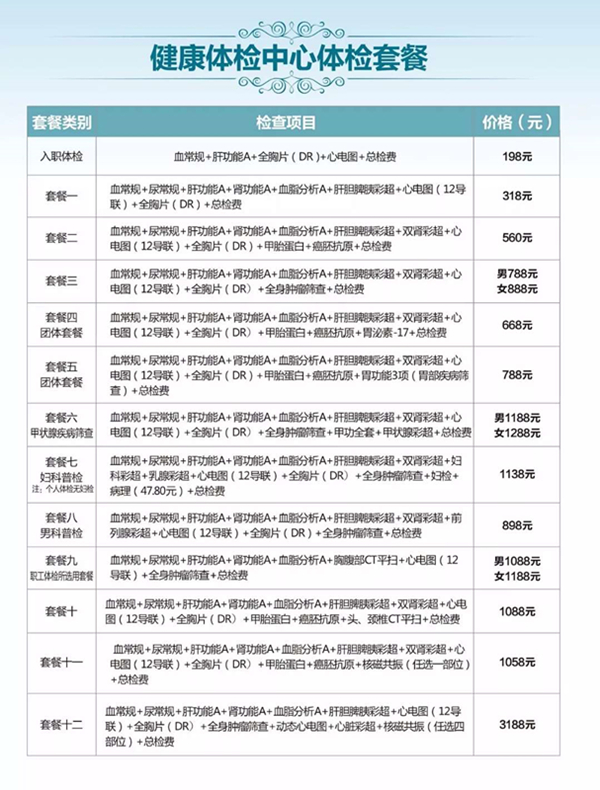重点项目:对工作压力大、负担重的白领人群,应该加强心脏检查,尽早发现隐性冠心病、早期心肌梗塞等早期心血管病。还有颈椎方面的检查、男女专项检查都很重要。